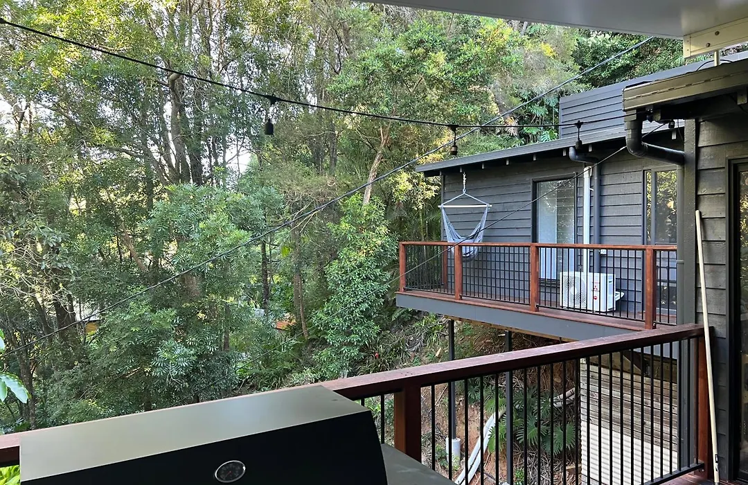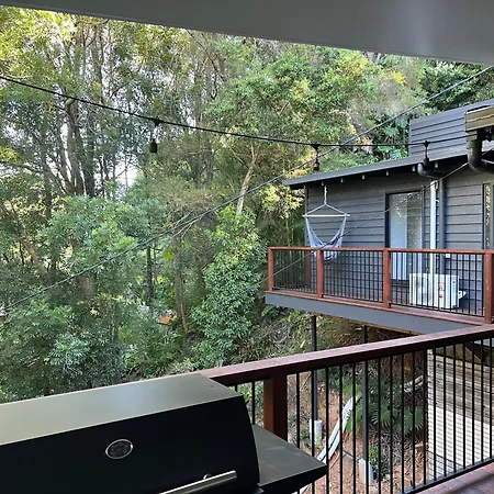Alojarse en la Forrest Cabin Meets Treehouse Villa permite a los huéspedes llegar fácilmente al Parque Currumbin Wildlife Sanctuary, situado a unos 15 minutos en coche. Esta villa ofrece a sus huéspedes terraza y jardín en el barrio Currumbin Valley.